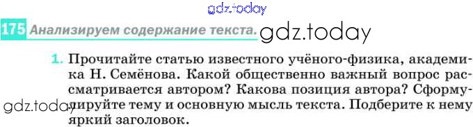 На страницах сайта gdz.today вы найдете учебный и вспомогательный материал, направленный на улучшения знаний школьной программы. ГДЗ - онлайн мир знаний Решение к упражнениям 175 Учебнику по Русскому языку для 8 класса Разумовская, Львова Дрофа Вертикаль 2013