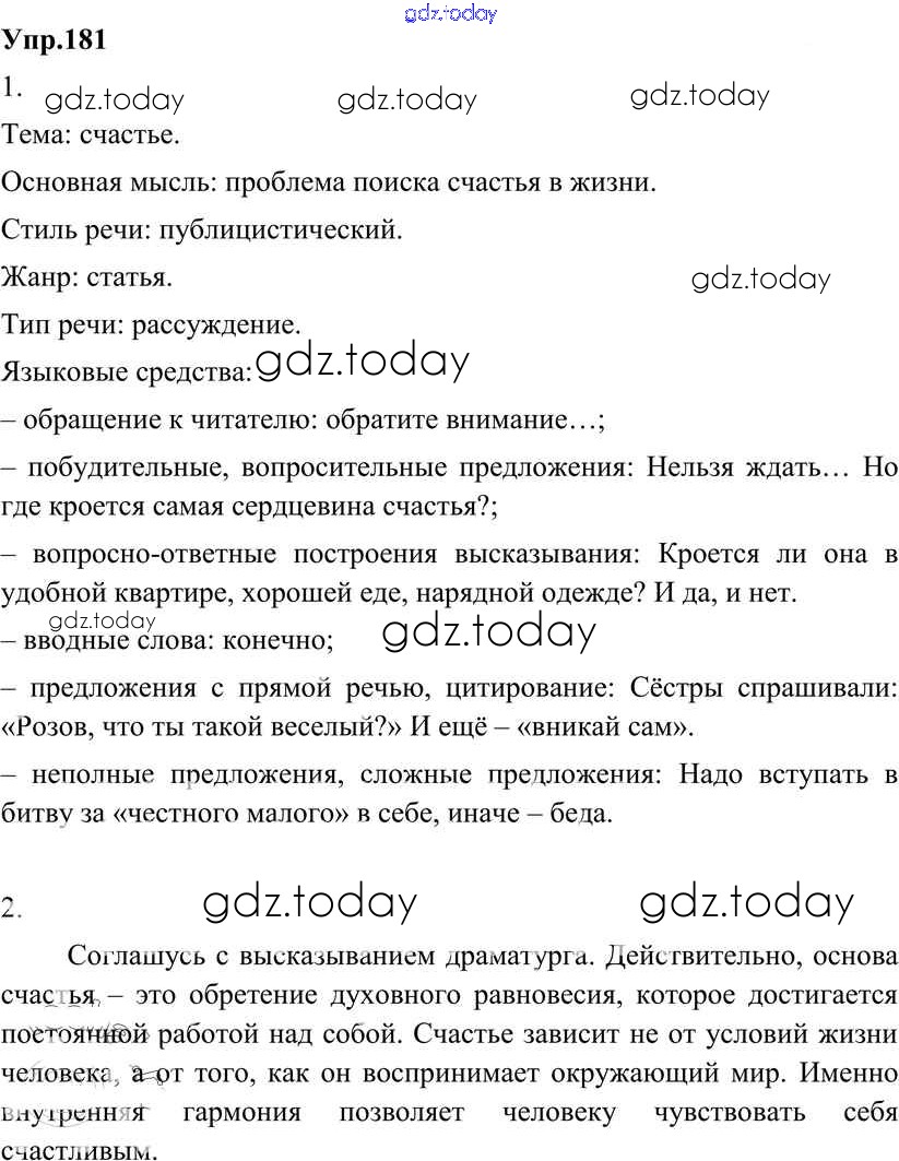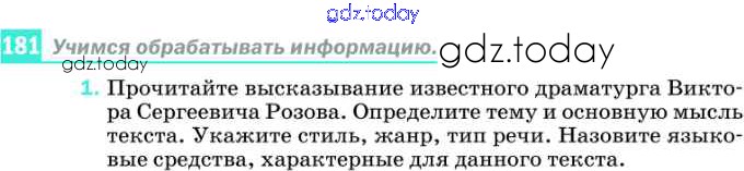 На страницах сайта gdz.today вы найдете учебный и вспомогательный материал, направленный на улучшения знаний школьной программы. ГДЗ - онлайн мир знаний Решение к упражнениям 181 Учебнику по Русскому языку для 8 класса Разумовская, Львова Дрофа Вертикаль 2013