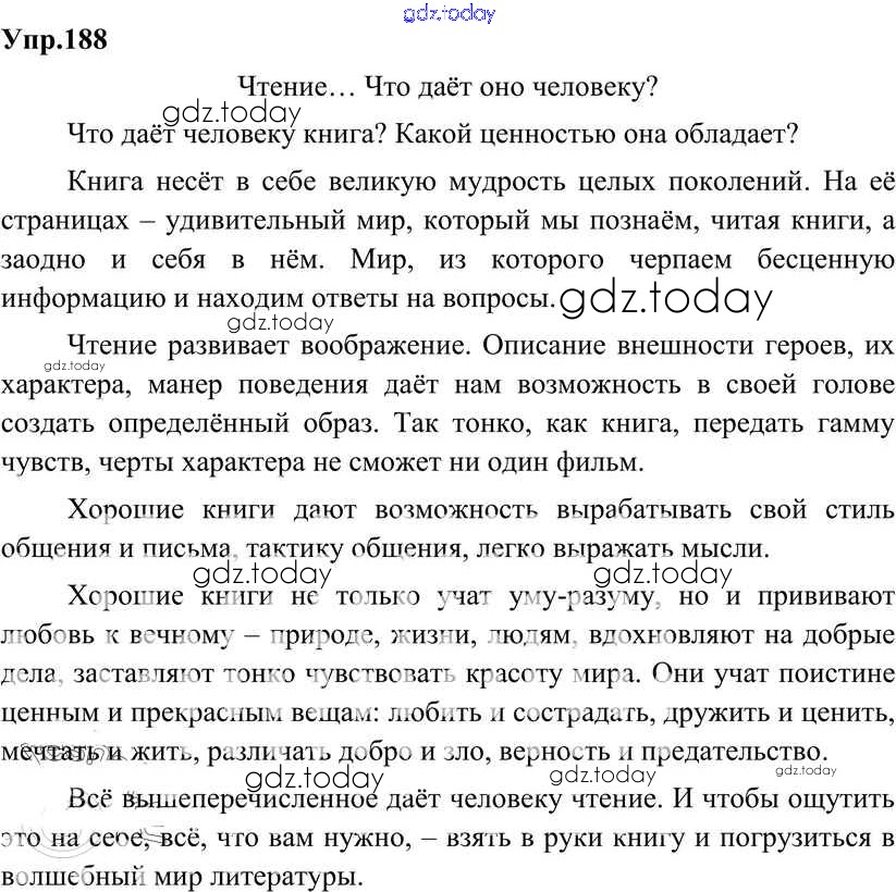 На страницах сайта gdz.today вы найдете учебный и вспомогательный материал, направленный на улучшения знаний школьной программы. ГДЗ - онлайн мир знаний Решение к упражнениям 188 Учебнику по Русскому языку для 8 класса Разумовская, Львова Дрофа Вертикаль 2013