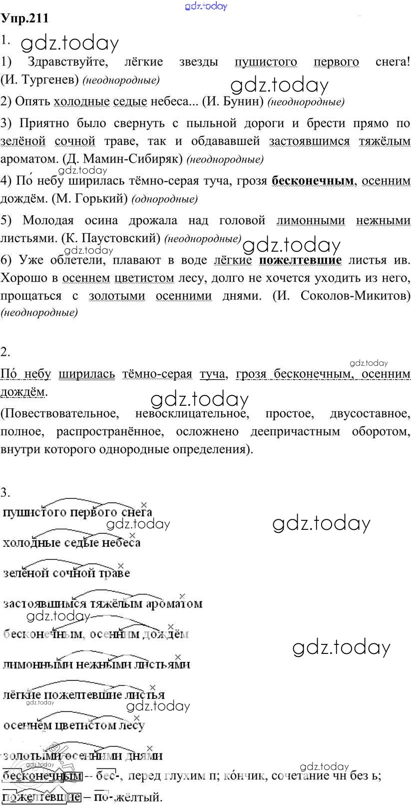 На страницах сайта gdz.today вы найдете учебный и вспомогательный материал, направленный на улучшения знаний школьной программы. ГДЗ - онлайн мир знаний Решение к упражнениям 211 Учебнику по Русскому языку для 8 класса Разумовская, Львова Дрофа Вертикаль 2013