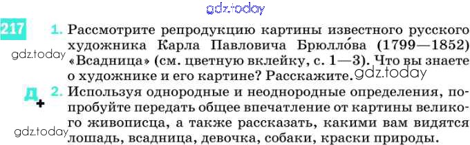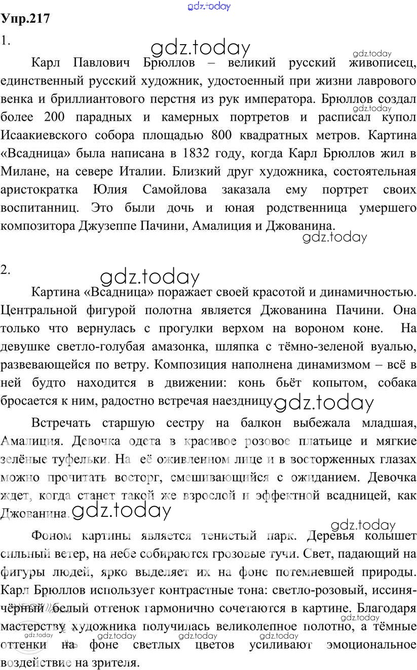На страницах сайта gdz.today вы найдете учебный и вспомогательный материал, направленный на улучшения знаний школьной программы. ГДЗ - онлайн мир знаний Решение к упражнениям 217 Учебнику по Русскому языку для 8 класса Разумовская, Львова Дрофа Вертикаль 2013