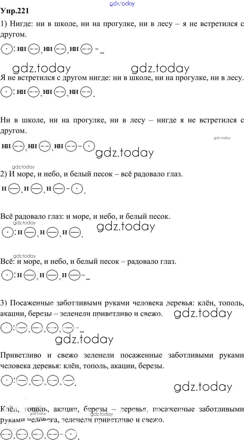 На страницах сайта gdz.today вы найдете учебный и вспомогательный материал, направленный на улучшения знаний школьной программы. ГДЗ - онлайн мир знаний Решение к упражнениям 221 Учебнику по Русскому языку для 8 класса Разумовская, Львова Дрофа Вертикаль 2013