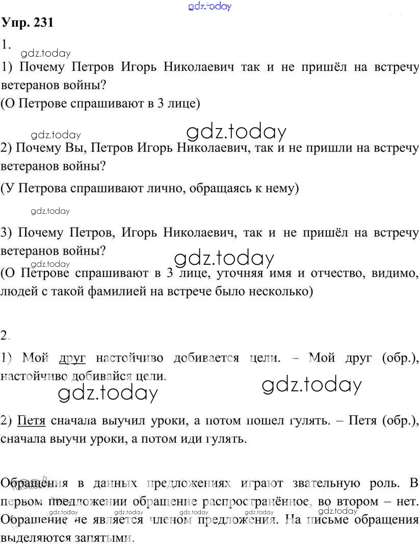 На страницах сайта gdz.today вы найдете учебный и вспомогательный материал, направленный на улучшения знаний школьной программы. ГДЗ - онлайн мир знаний Решение к упражнениям 231 Учебнику по Русскому языку для 8 класса Разумовская, Львова Дрофа Вертикаль 2013