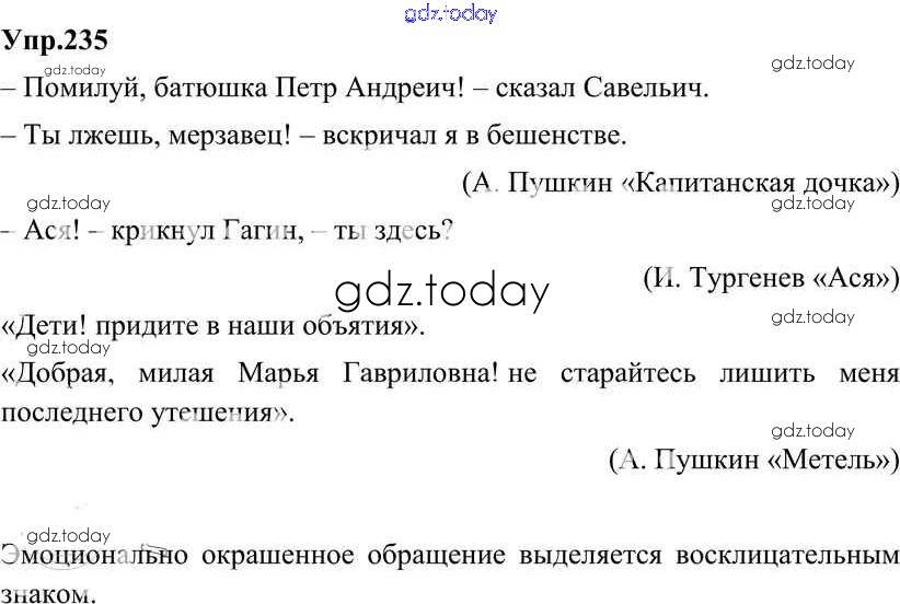 На страницах сайта gdz.today вы найдете учебный и вспомогательный материал, направленный на улучшения знаний школьной программы. ГДЗ - онлайн мир знаний Решение к упражнениям 235 Учебнику по Русскому языку для 8 класса Разумовская, Львова Дрофа Вертикаль 2013