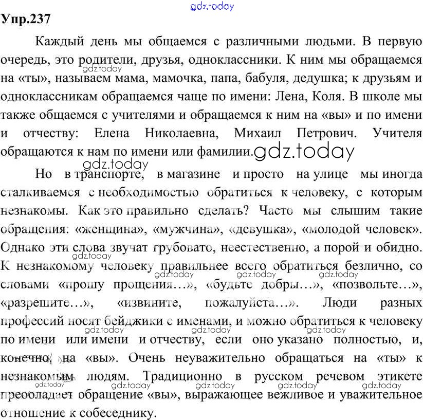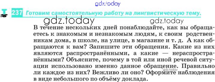 На страницах сайта gdz.today вы найдете учебный и вспомогательный материал, направленный на улучшения знаний школьной программы. ГДЗ - онлайн мир знаний Решение к упражнениям 237 Учебнику по Русскому языку для 8 класса Разумовская, Львова Дрофа Вертикаль 2013