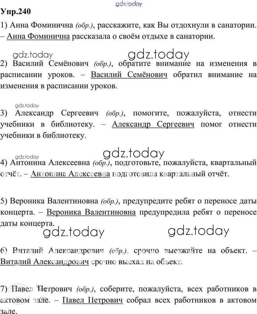 На страницах сайта gdz.today вы найдете учебный и вспомогательный материал, направленный на улучшения знаний школьной программы. ГДЗ - онлайн мир знаний Решение к упражнениям 240 Учебнику по Русскому языку для 8 класса Разумовская, Львова Дрофа Вертикаль 2013