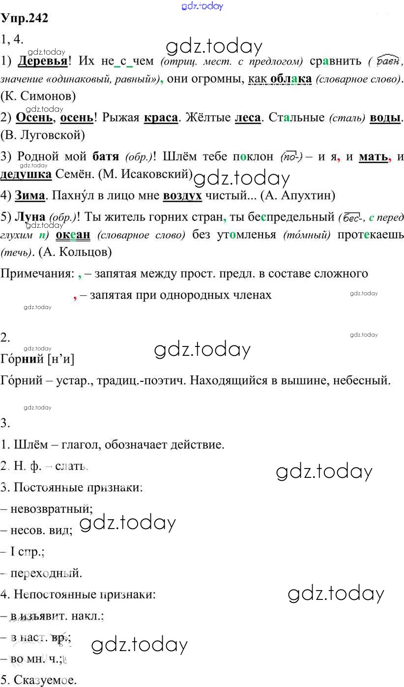 На страницах сайта gdz.today вы найдете учебный и вспомогательный материал, направленный на улучшения знаний школьной программы. ГДЗ - онлайн мир знаний Решение к упражнениям 242 Учебнику по Русскому языку для 8 класса Разумовская, Львова Дрофа Вертикаль 2013