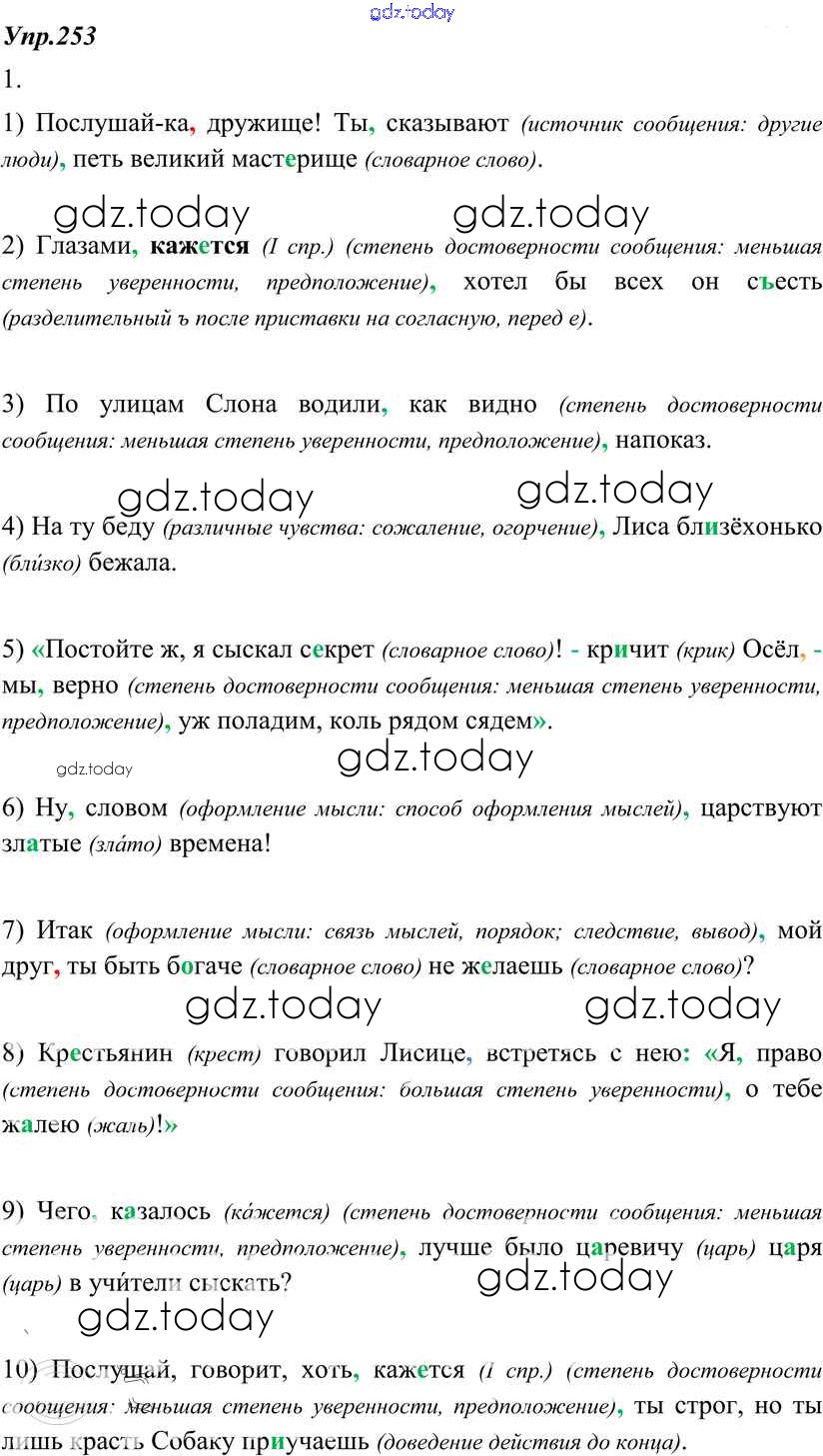 На страницах сайта gdz.today вы найдете учебный и вспомогательный материал, направленный на улучшения знаний школьной программы. ГДЗ - онлайн мир знаний Решение к упражнениям 253 Учебнику по Русскому языку для 8 класса Разумовская, Львова Дрофа Вертикаль 2013