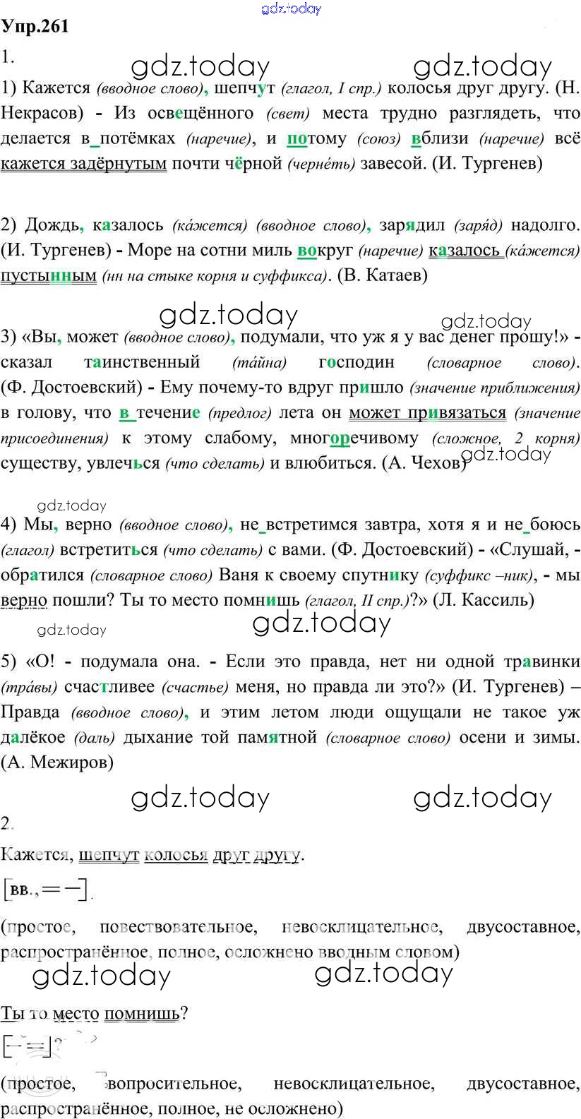 На страницах сайта gdz.today вы найдете учебный и вспомогательный материал, направленный на улучшения знаний школьной программы. ГДЗ - онлайн мир знаний Решение к упражнениям 261 Учебнику по Русскому языку для 8 класса Разумовская, Львова Дрофа Вертикаль 2013