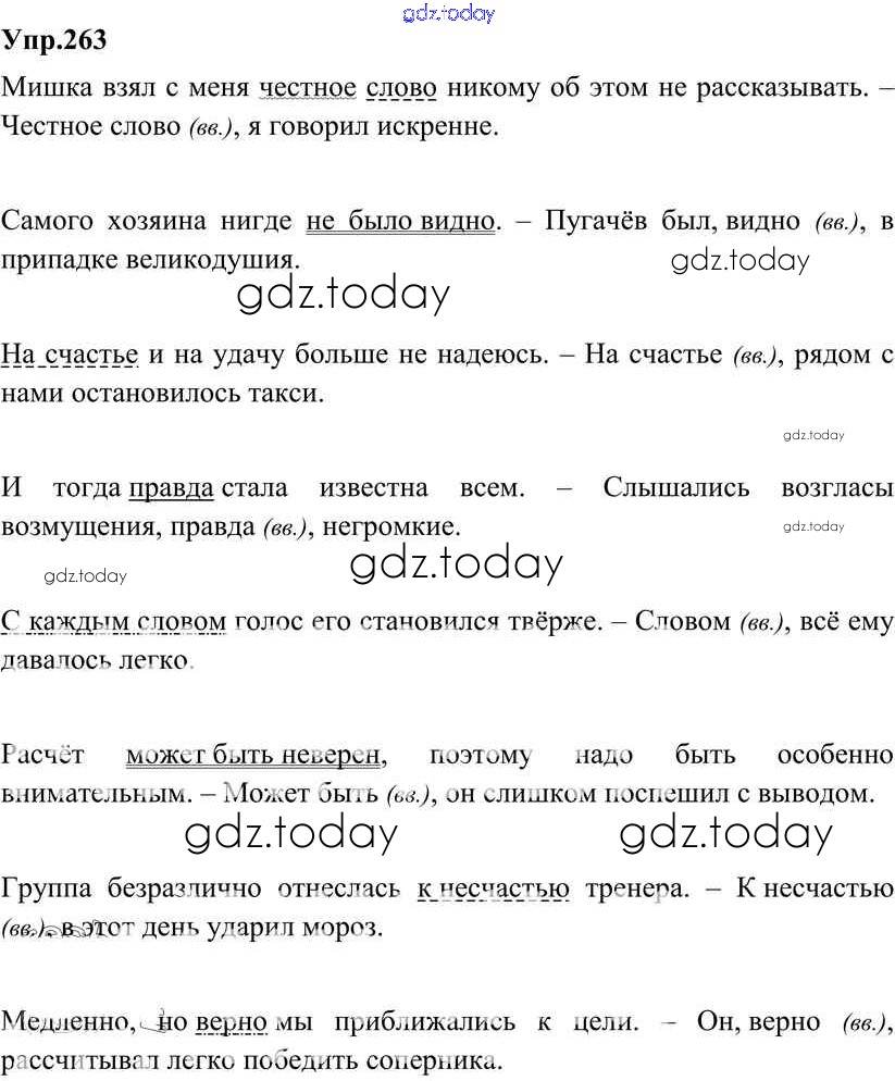 На страницах сайта gdz.today вы найдете учебный и вспомогательный материал, направленный на улучшения знаний школьной программы. ГДЗ - онлайн мир знаний Решение к упражнениям 263 Учебнику по Русскому языку для 8 класса Разумовская, Львова Дрофа Вертикаль 2013