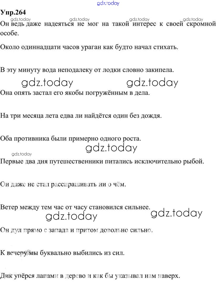 На страницах сайта gdz.today вы найдете учебный и вспомогательный материал, направленный на улучшения знаний школьной программы. ГДЗ - онлайн мир знаний Решение к упражнениям 264 Учебнику по Русскому языку для 8 класса Разумовская, Львова Дрофа Вертикаль 2013