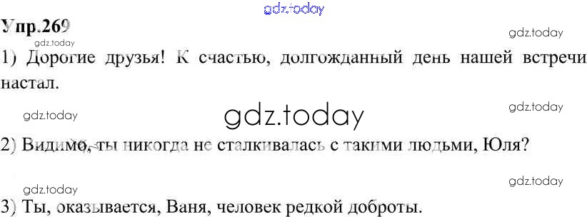 На страницах сайта gdz.today вы найдете учебный и вспомогательный материал, направленный на улучшения знаний школьной программы. ГДЗ - онлайн мир знаний Решение к упражнениям 269 Учебнику по Русскому языку для 8 класса Разумовская, Львова Дрофа Вертикаль 2013