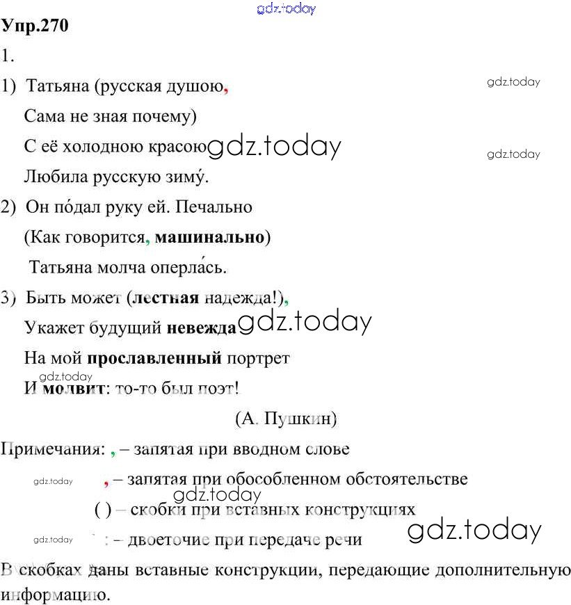 На страницах сайта gdz.today вы найдете учебный и вспомогательный материал, направленный на улучшения знаний школьной программы. ГДЗ - онлайн мир знаний Решение к упражнениям 270 Учебнику по Русскому языку для 8 класса Разумовская, Львова Дрофа Вертикаль 2013