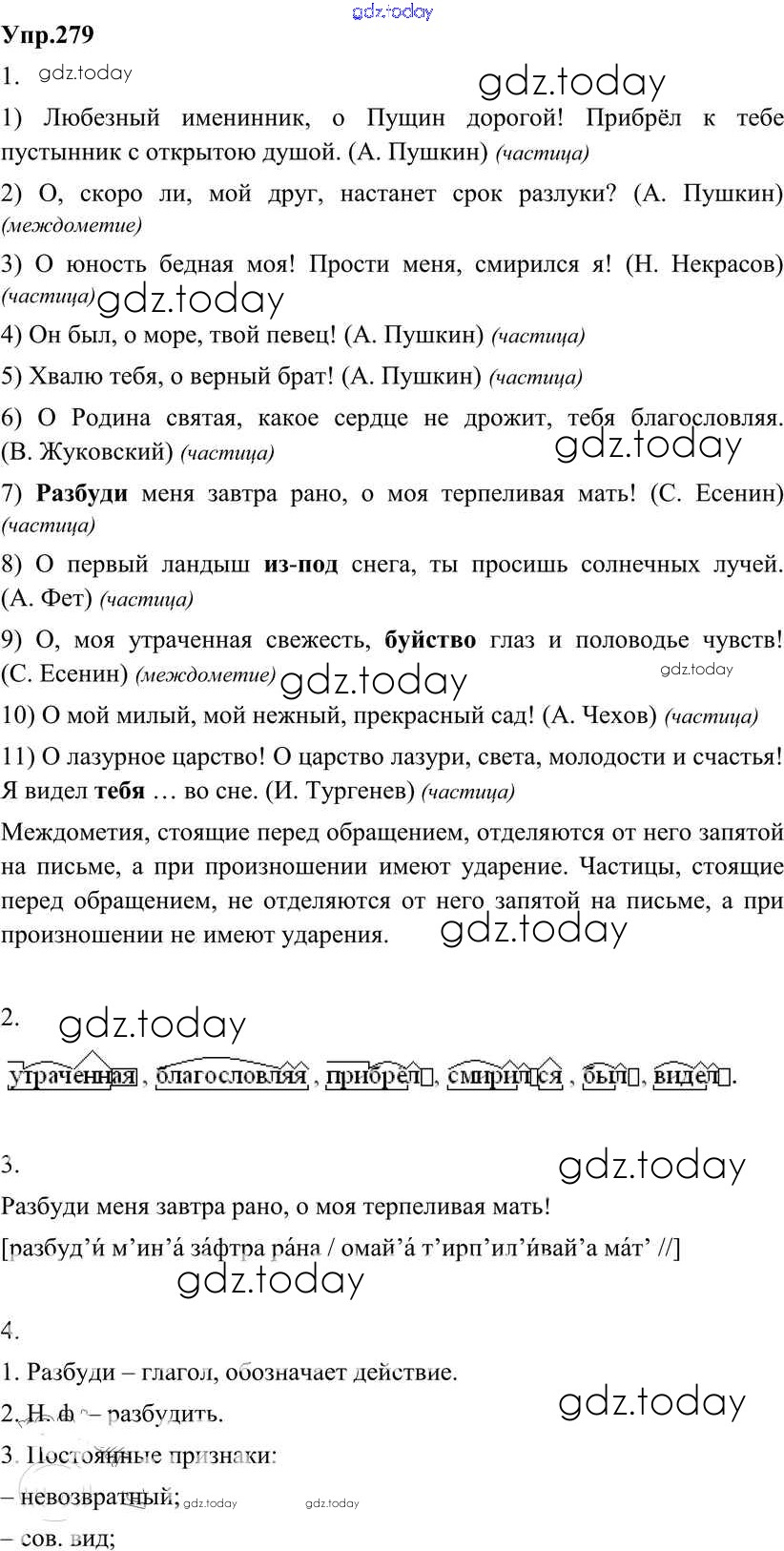 На страницах сайта gdz.today вы найдете учебный и вспомогательный материал, направленный на улучшения знаний школьной программы. ГДЗ - онлайн мир знаний Решение к упражнениям 279 Учебнику по Русскому языку для 8 класса Разумовская, Львова Дрофа Вертикаль 2013