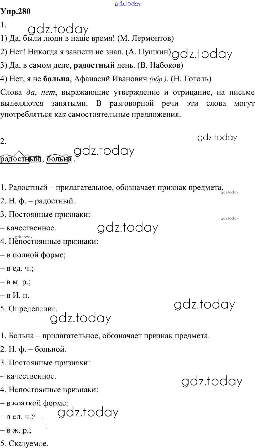 На страницах сайта gdz.today вы найдете учебный и вспомогательный материал, направленный на улучшения знаний школьной программы. ГДЗ - онлайн мир знаний Решение к упражнениям 280 Учебнику по Русскому языку для 8 класса Разумовская, Львова Дрофа Вертикаль 2013