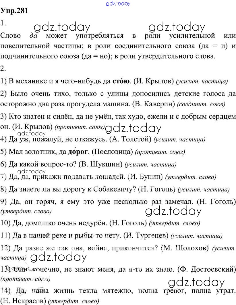 На страницах сайта gdz.today вы найдете учебный и вспомогательный материал, направленный на улучшения знаний школьной программы. ГДЗ - онлайн мир знаний Решение к упражнениям 281 Учебнику по Русскому языку для 8 класса Разумовская, Львова Дрофа Вертикаль 2013