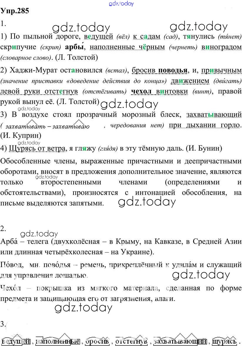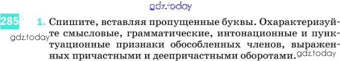 На страницах сайта gdz.today вы найдете учебный и вспомогательный материал, направленный на улучшения знаний школьной программы. ГДЗ - онлайн мир знаний Решение к упражнениям 285 Учебнику по Русскому языку для 8 класса Разумовская, Львова Дрофа Вертикаль 2013