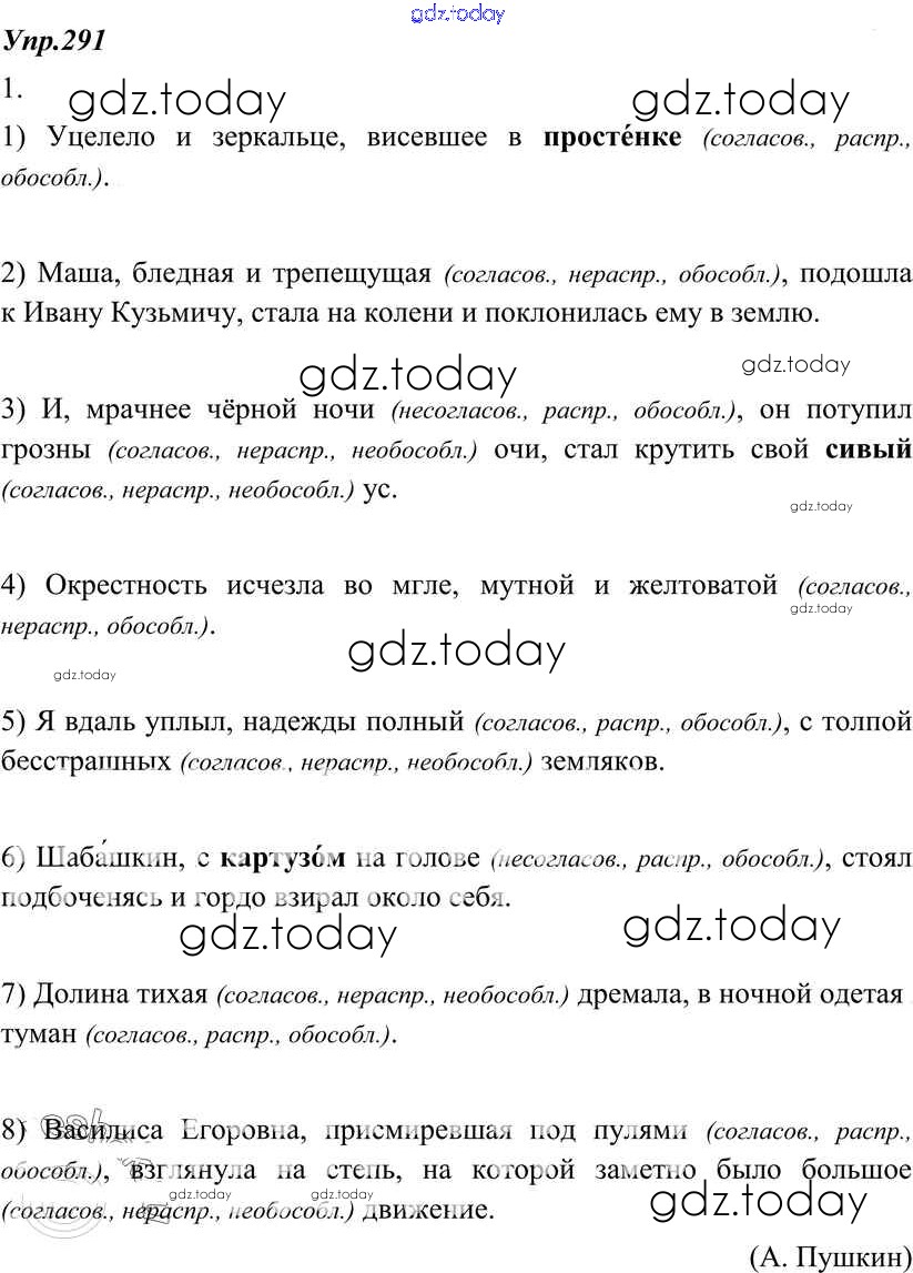 На страницах сайта gdz.today вы найдете учебный и вспомогательный материал, направленный на улучшения знаний школьной программы. ГДЗ - онлайн мир знаний Решение к упражнениям 291 Учебнику по Русскому языку для 8 класса Разумовская, Львова Дрофа Вертикаль 2013
