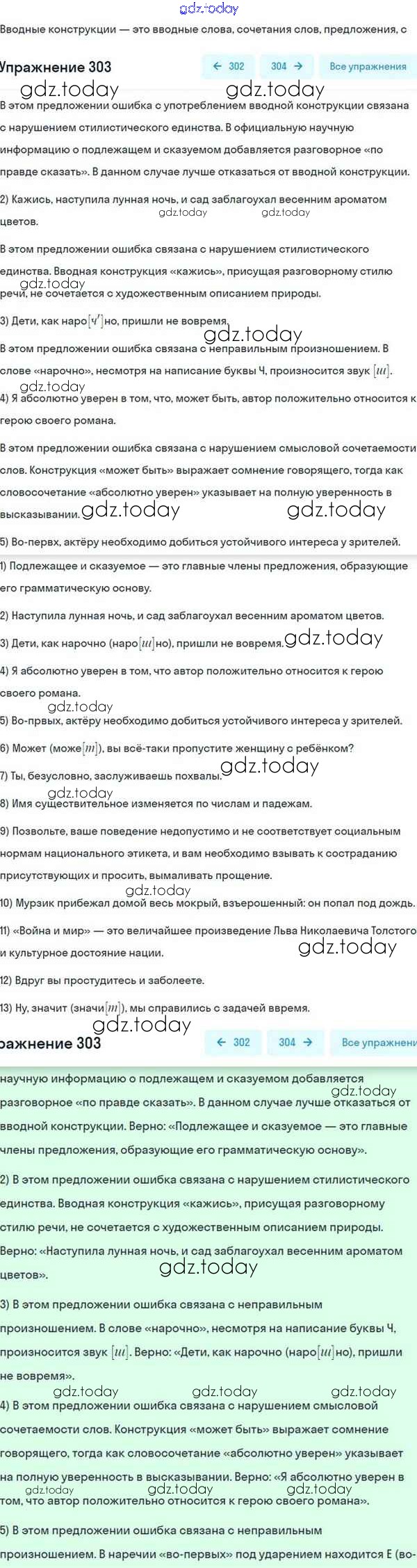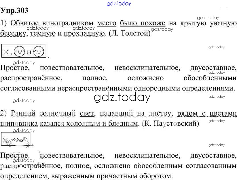 На страницах сайта gdz.today вы найдете учебный и вспомогательный материал, направленный на улучшения знаний школьной программы. ГДЗ - онлайн мир знаний Упражнения 303 Учебнику по Русскому языку для 8 класса Разумовская, Львова Дрофа, Просвещение Вертикаль 2015, 2022