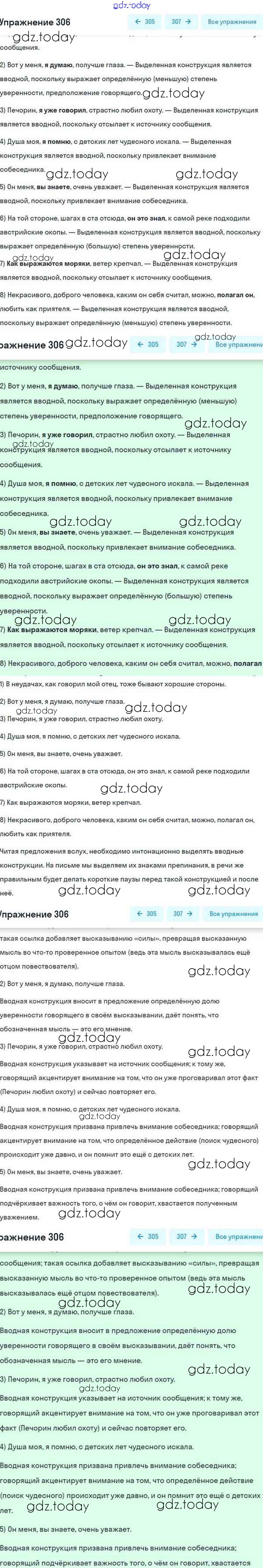На страницах сайта gdz.today вы найдете учебный и вспомогательный материал, направленный на улучшения знаний школьной программы. ГДЗ - онлайн мир знаний Упражнения 306 Учебнику по Русскому языку для 8 класса Разумовская, Львова Дрофа, Просвещение Вертикаль 2015, 2022