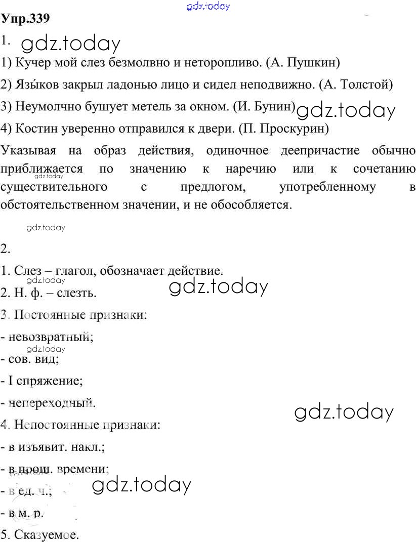 На страницах сайта gdz.today вы найдете учебный и вспомогательный материал, направленный на улучшения знаний школьной программы. ГДЗ - онлайн мир знаний Решение к упражнениям 339 Учебнику по Русскому языку для 8 класса Разумовская, Львова Дрофа Вертикаль 2013