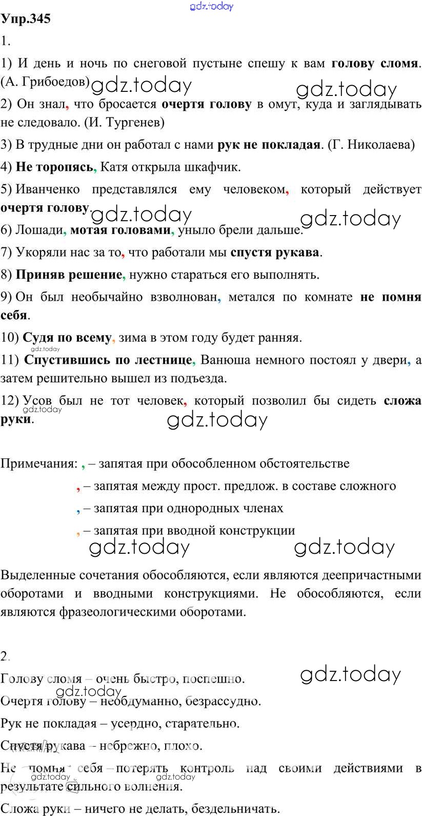 На страницах сайта gdz.today вы найдете учебный и вспомогательный материал, направленный на улучшения знаний школьной программы. ГДЗ - онлайн мир знаний Решение к упражнениям 345 Учебнику по Русскому языку для 8 класса Разумовская, Львова Дрофа Вертикаль 2013