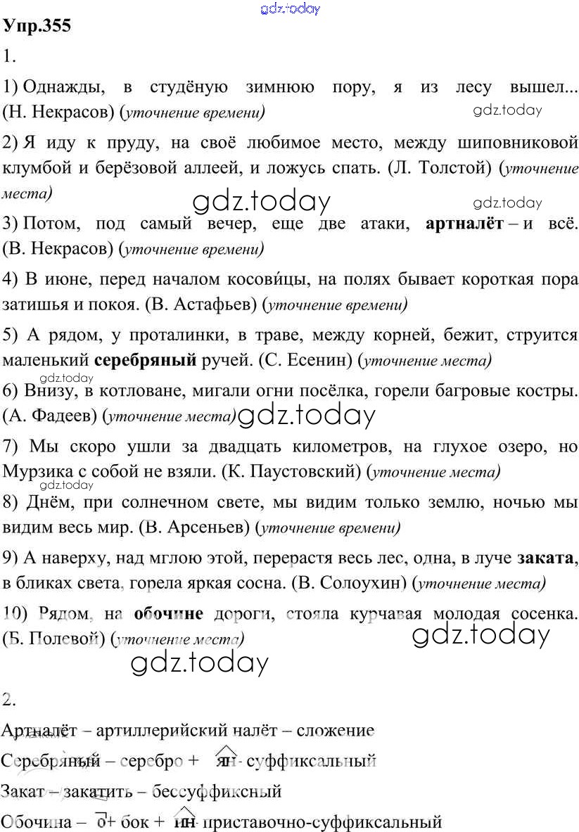 На страницах сайта gdz.today вы найдете учебный и вспомогательный материал, направленный на улучшения знаний школьной программы. ГДЗ - онлайн мир знаний Решение к упражнениям 355 Учебнику по Русскому языку для 8 класса Разумовская, Львова Дрофа Вертикаль 2013