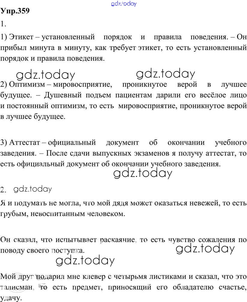 На страницах сайта gdz.today вы найдете учебный и вспомогательный материал, направленный на улучшения знаний школьной программы. ГДЗ - онлайн мир знаний Решение к упражнениям 359 Учебнику по Русскому языку для 8 класса Разумовская, Львова Дрофа Вертикаль 2013