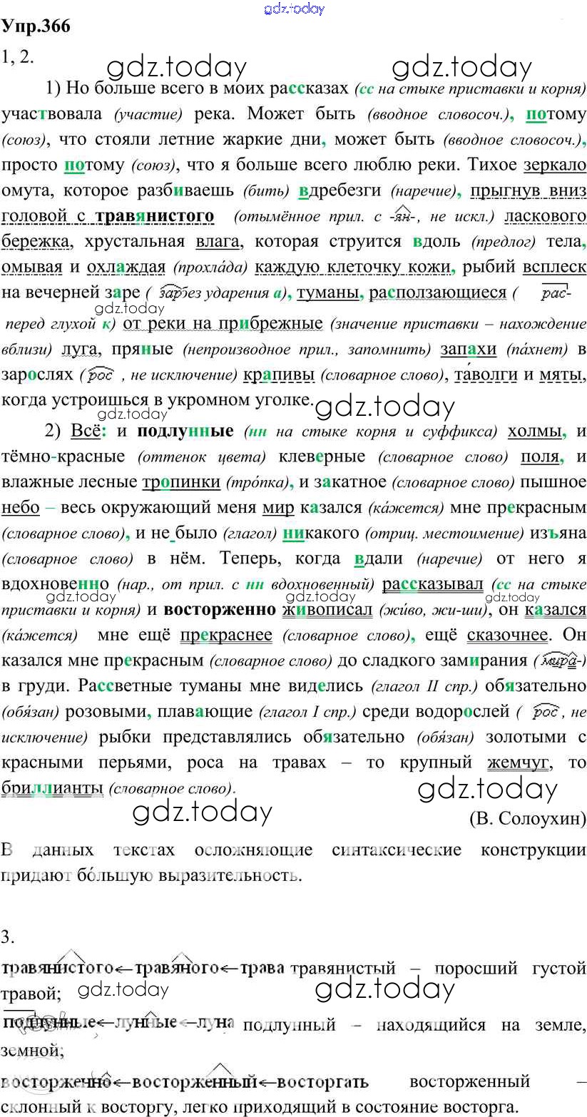 На страницах сайта gdz.today вы найдете учебный и вспомогательный материал, направленный на улучшения знаний школьной программы. ГДЗ - онлайн мир знаний Решение к упражнениям 366 Учебнику по Русскому языку для 8 класса Разумовская, Львова Дрофа Вертикаль 2013