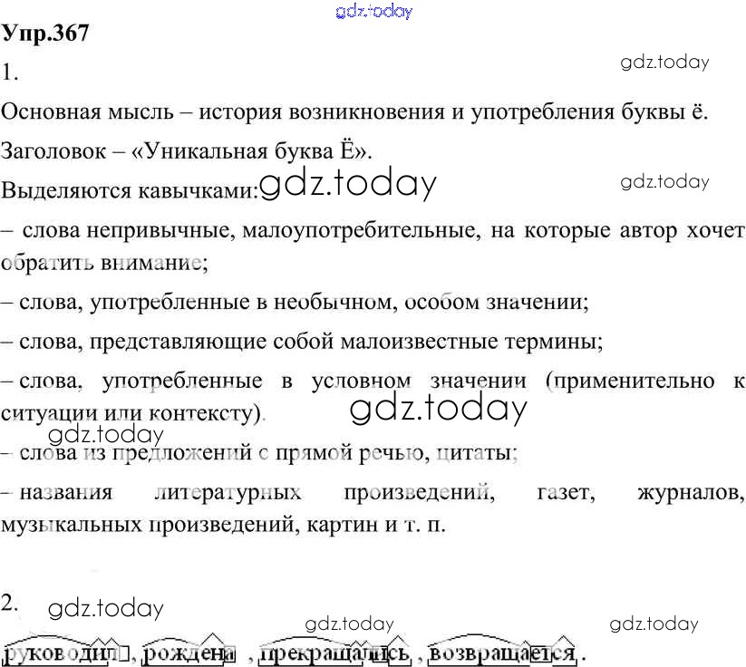На страницах сайта gdz.today вы найдете учебный и вспомогательный материал, направленный на улучшения знаний школьной программы. ГДЗ - онлайн мир знаний Решение к упражнениям 367 Учебнику по Русскому языку для 8 класса Разумовская, Львова Дрофа Вертикаль 2013