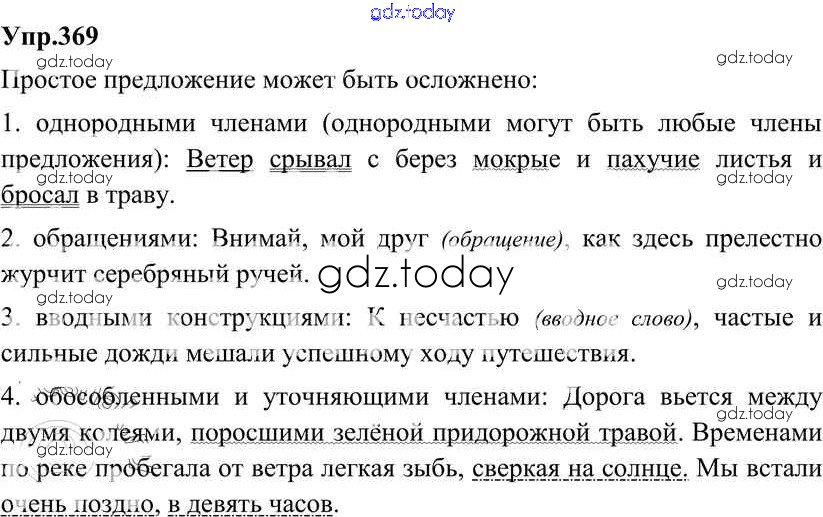 На страницах сайта gdz.today вы найдете учебный и вспомогательный материал, направленный на улучшения знаний школьной программы. ГДЗ - онлайн мир знаний Решение к упражнениям 369 Учебнику по Русскому языку для 8 класса Разумовская, Львова Дрофа Вертикаль 2013