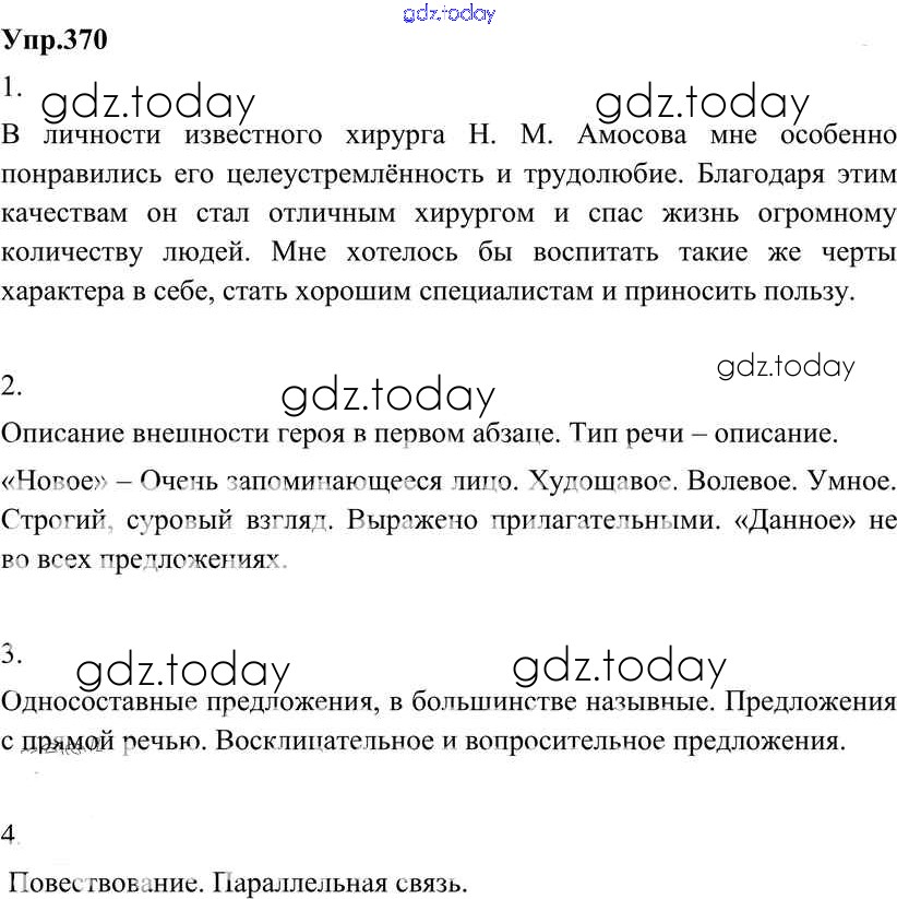 На страницах сайта gdz.today вы найдете учебный и вспомогательный материал, направленный на улучшения знаний школьной программы. ГДЗ - онлайн мир знаний Решение к упражнениям 370 Учебнику по Русскому языку для 8 класса Разумовская, Львова Дрофа Вертикаль 2013