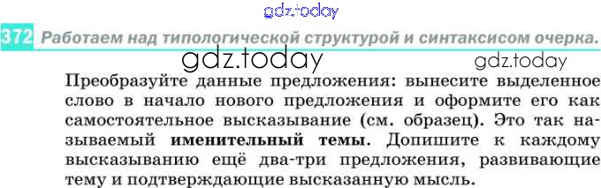 На страницах сайта gdz.today вы найдете учебный и вспомогательный материал, направленный на улучшения знаний школьной программы. ГДЗ - онлайн мир знаний Решение к упражнениям 372 Учебнику по Русскому языку для 8 класса Разумовская, Львова Дрофа Вертикаль 2013