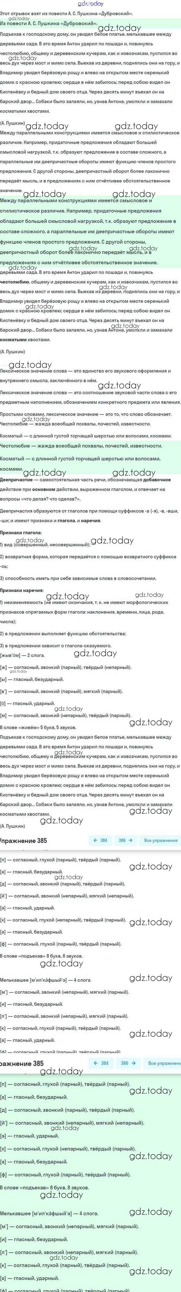 На страницах сайта gdz.today вы найдете учебный и вспомогательный материал, направленный на улучшения знаний школьной программы. ГДЗ - онлайн мир знаний Упражнения 385 Учебнику по Русскому языку для 8 класса Разумовская, Львова Дрофа, Просвещение Вертикаль 2015, 2022