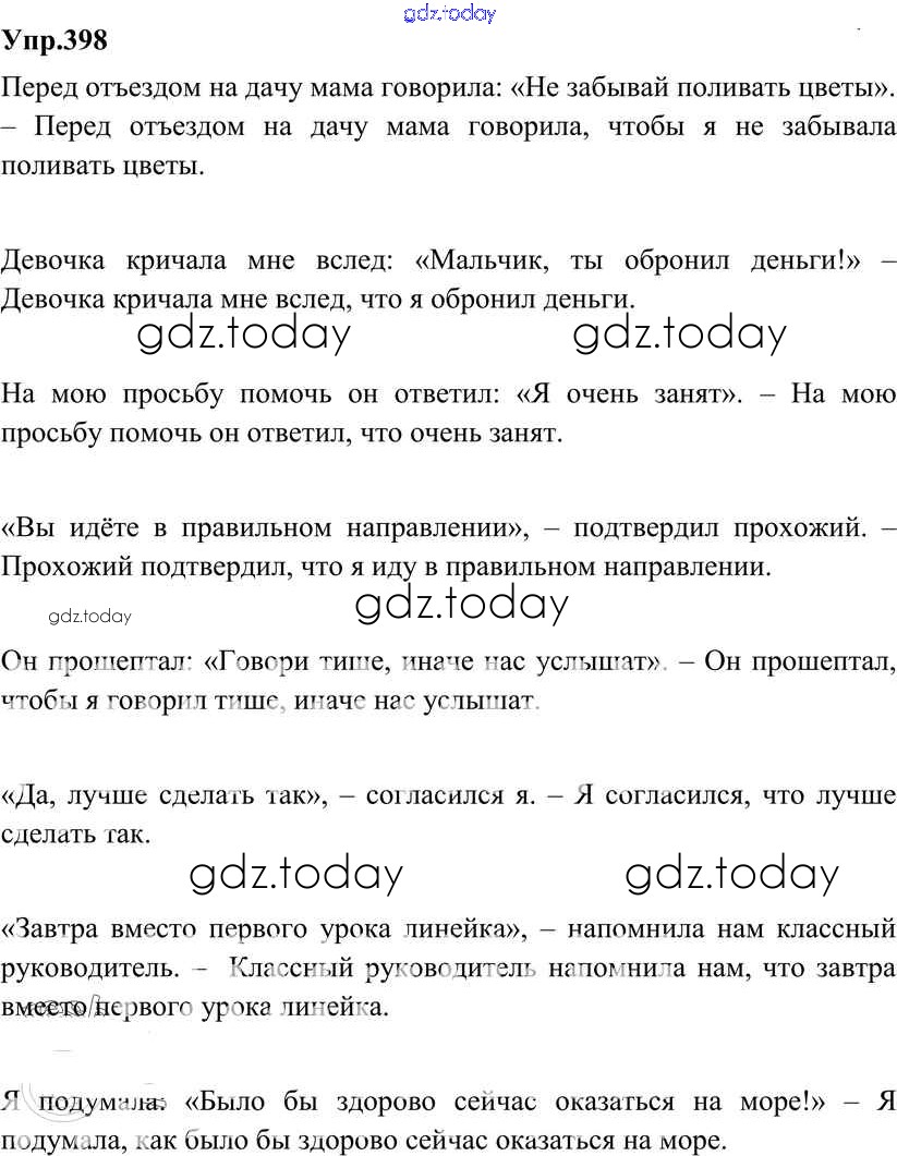 На страницах сайта gdz.today вы найдете учебный и вспомогательный материал, направленный на улучшения знаний школьной программы. ГДЗ - онлайн мир знаний Решение к упражнениям 398 Учебнику по Русскому языку для 8 класса Разумовская, Львова Дрофа Вертикаль 2013