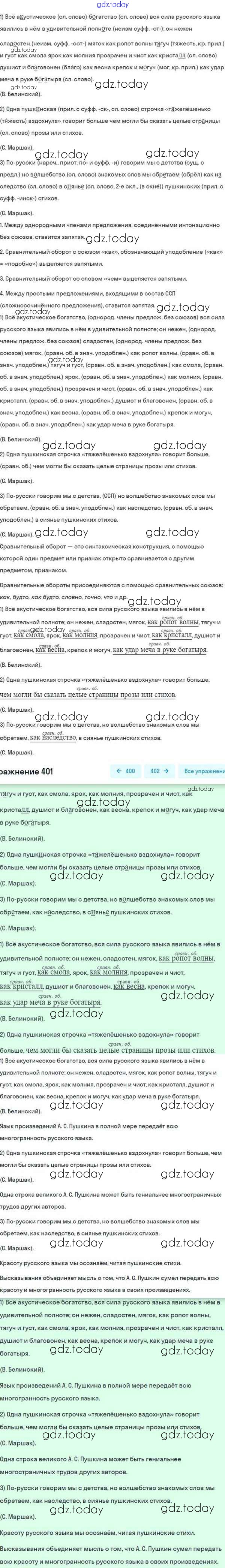 На страницах сайта gdz.today вы найдете учебный и вспомогательный материал, направленный на улучшения знаний школьной программы. ГДЗ - онлайн мир знаний Упражнения 401 Учебнику по Русскому языку для 8 класса Разумовская, Львова Дрофа, Просвещение Вертикаль 2015, 2022