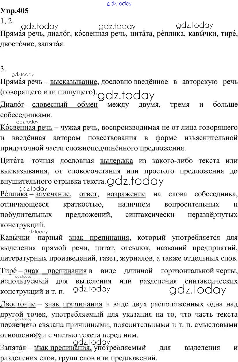 На страницах сайта gdz.today вы найдете учебный и вспомогательный материал, направленный на улучшения знаний школьной программы. ГДЗ - онлайн мир знаний Решение к упражнениям 405 Учебнику по Русскому языку для 8 класса Разумовская, Львова Дрофа Вертикаль 2013