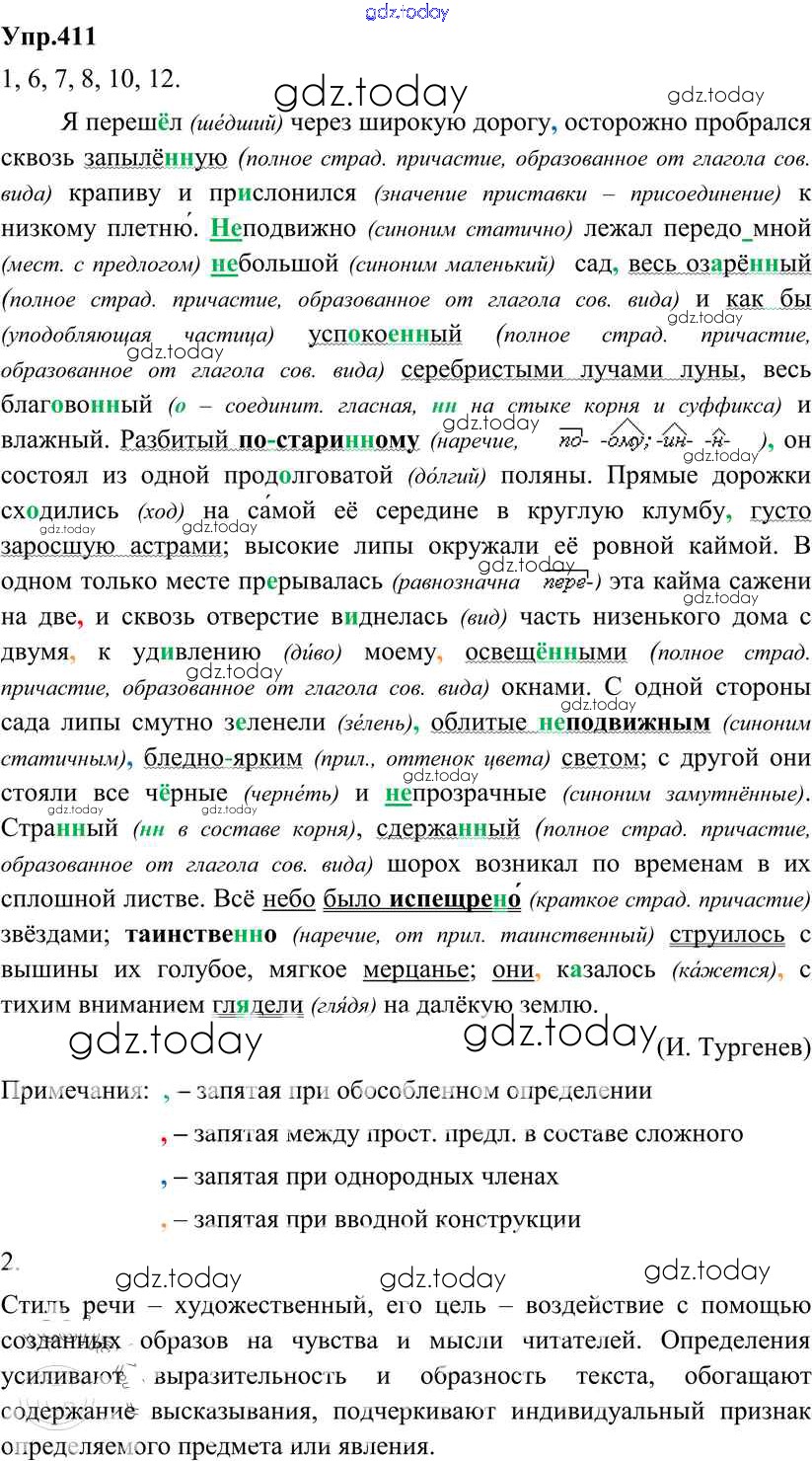 На страницах сайта gdz.today вы найдете учебный и вспомогательный материал, направленный на улучшения знаний школьной программы. ГДЗ - онлайн мир знаний Решение к упражнениям 411 Учебнику по Русскому языку для 8 класса Разумовская, Львова Дрофа Вертикаль 2013