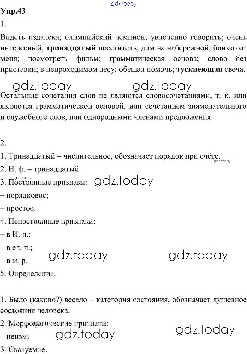 На страницах сайта gdz.today вы найдете учебный и вспомогательный материал, направленный на улучшения знаний школьной программы. ГДЗ - онлайн мир знаний Решение к упражнениям 43 Учебнику по Русскому языку для 8 класса Разумовская, Львова Дрофа Вертикаль 2013