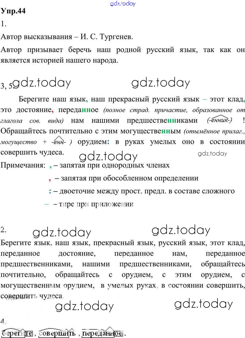 Ответы к Решение к упражнениям 44 Учебнику по Русскому языку для 8 класса Разумовская, Львова Дрофа Вертикаль 2013