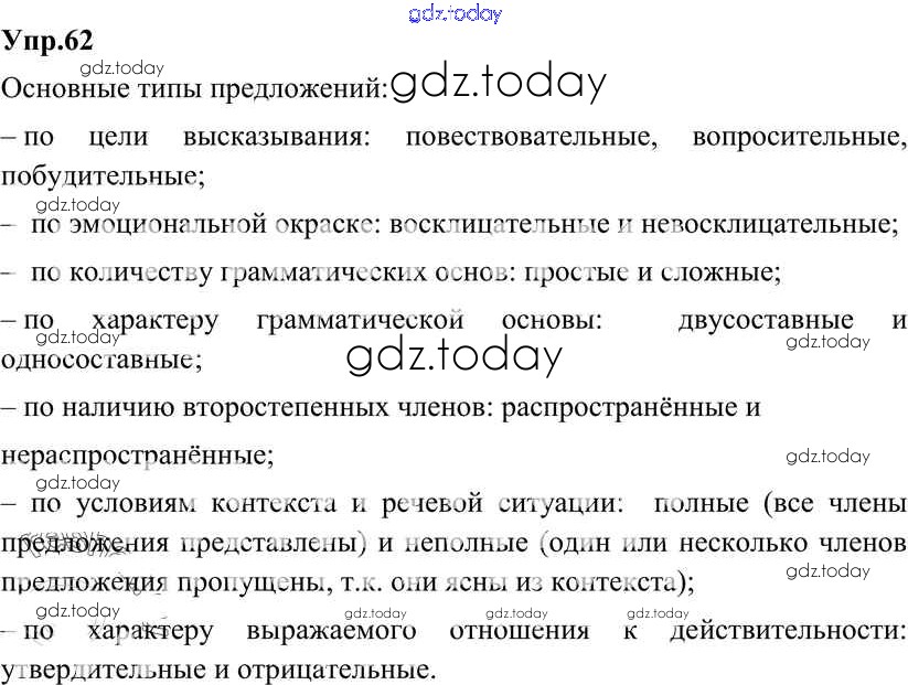 На страницах сайта gdz.today вы найдете учебный и вспомогательный материал, направленный на улучшения знаний школьной программы. ГДЗ - онлайн мир знаний Решение к упражнениям 62 Учебнику по Русскому языку для 8 класса Разумовская, Львова Дрофа Вертикаль 2013