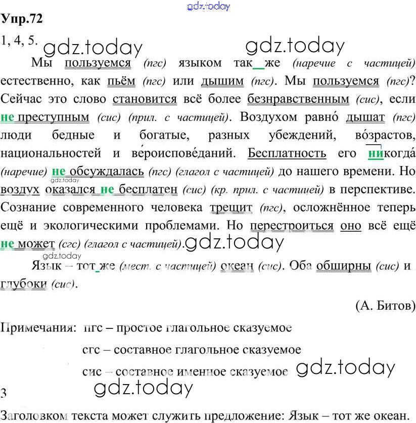 На страницах сайта gdz.today вы найдете учебный и вспомогательный материал, направленный на улучшения знаний школьной программы. ГДЗ - онлайн мир знаний Решение к упражнениям 72 Учебнику по Русскому языку для 8 класса Разумовская, Львова Дрофа Вертикаль 2013