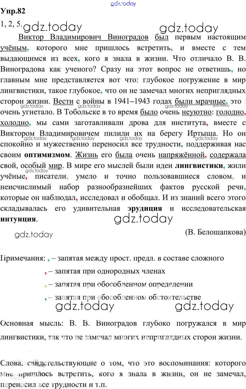 На страницах сайта gdz.today вы найдете учебный и вспомогательный материал, направленный на улучшения знаний школьной программы. ГДЗ - онлайн мир знаний Решение к упражнениям 82 Учебнику по Русскому языку для 8 класса Разумовская, Львова Дрофа Вертикаль 2013