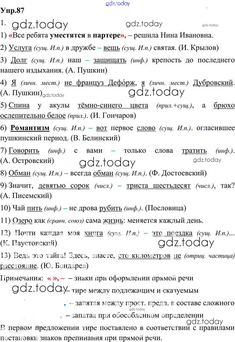 На страницах сайта gdz.today вы найдете учебный и вспомогательный материал, направленный на улучшения знаний школьной программы. ГДЗ - онлайн мир знаний Решение к упражнениям 87 Учебнику по Русскому языку для 8 класса Разумовская, Львова Дрофа Вертикаль 2013
