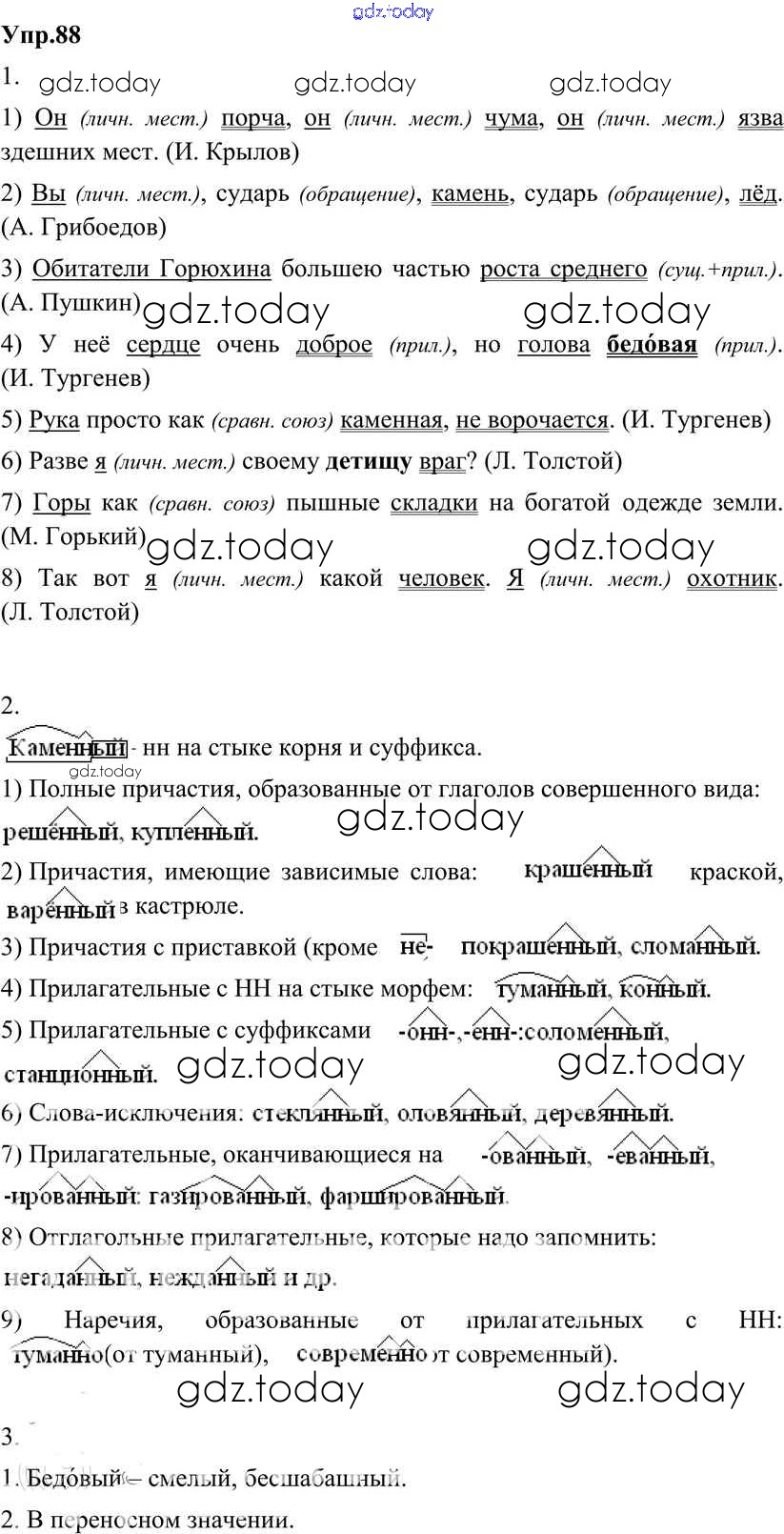 На страницах сайта gdz.today вы найдете учебный и вспомогательный материал, направленный на улучшения знаний школьной программы. ГДЗ - онлайн мир знаний Решение к упражнениям 88 Учебнику по Русскому языку для 8 класса Разумовская, Львова Дрофа Вертикаль 2013