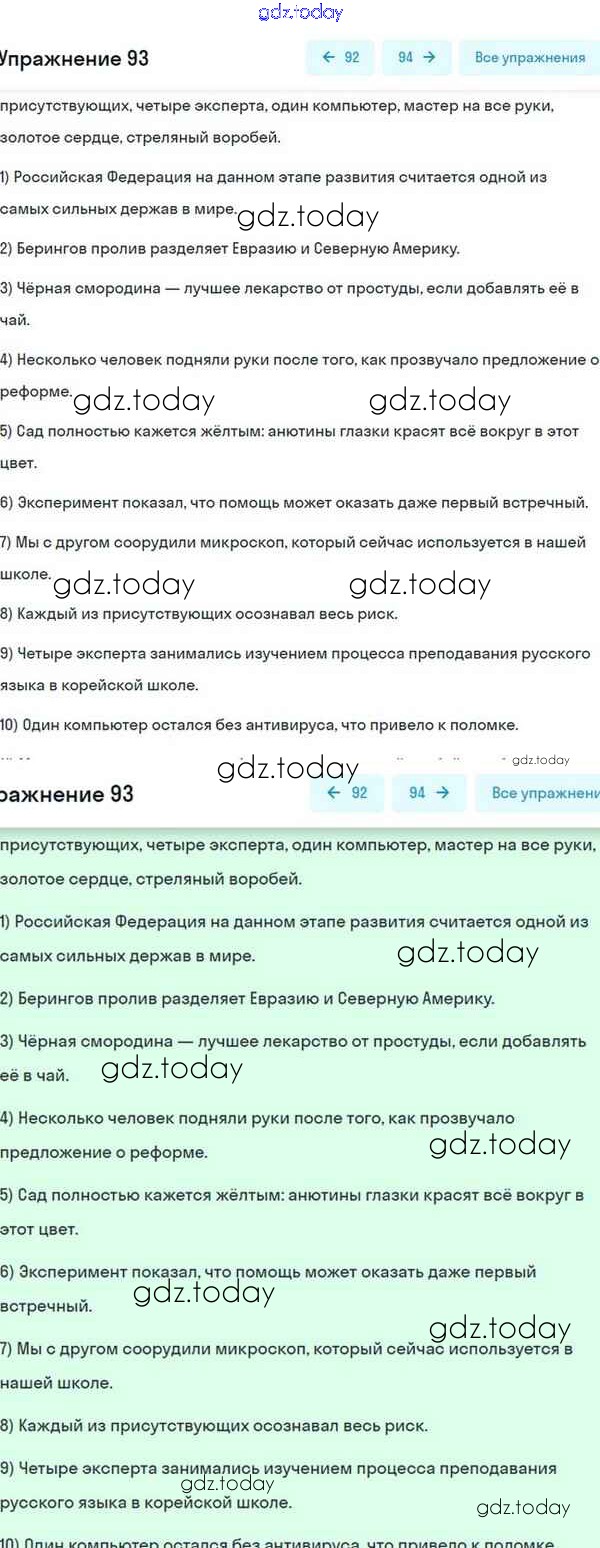 На страницах сайта gdz.today вы найдете учебный и вспомогательный материал, направленный на улучшения знаний школьной программы. ГДЗ - онлайн мир знаний Упражнения 93 Учебнику по Русскому языку для 8 класса Разумовская, Львова Дрофа, Просвещение Вертикаль 2015, 2022
