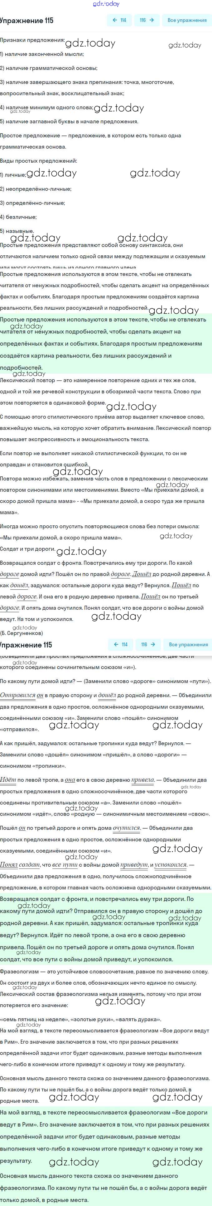 На страницах сайта gdz.today вы найдете учебный и вспомогательный материал, направленный на улучшения знаний школьной программы. ГДЗ - онлайн мир знаний Решение. Упражнения 115 Учебнику по Русскому языку для 8 класса Рыбченкова, Александрова Просвещение, Просвещение 2015, 2022