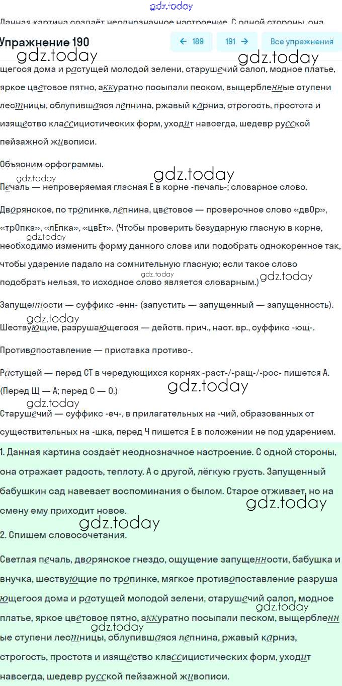 На страницах сайта gdz.today вы найдете учебный и вспомогательный материал, направленный на улучшения знаний школьной программы. ГДЗ - онлайн мир знаний Решение. Упражнения 190 Учебнику по Русскому языку для 8 класса Рыбченкова, Александрова Просвещение, Просвещение 2015, 2022