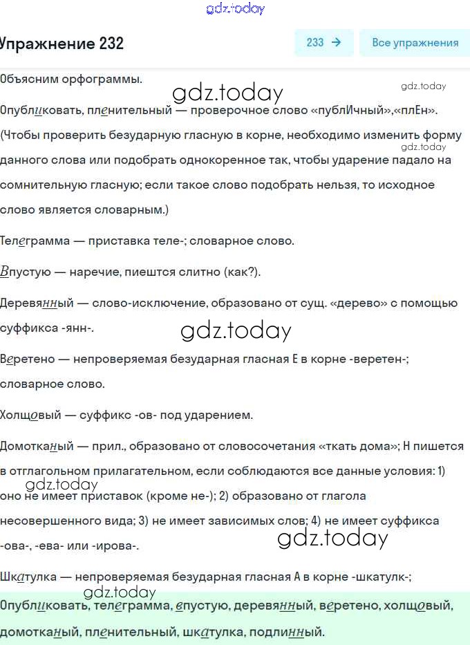 На страницах сайта gdz.today вы найдете учебный и вспомогательный материал, направленный на улучшения знаний школьной программы. ГДЗ - онлайн мир знаний Решение. Упражнения 232 Учебнику по Русскому языку для 8 класса Рыбченкова, Александрова Просвещение, Просвещение 2015, 2022