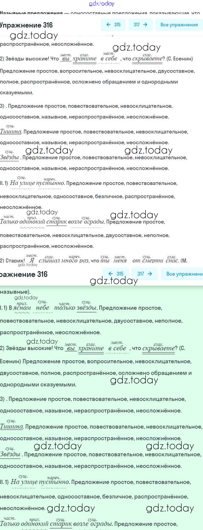 На страницах сайта gdz.today вы найдете учебный и вспомогательный материал, направленный на улучшения знаний школьной программы. ГДЗ - онлайн мир знаний Решение. Упражнения 316 Учебнику по Русскому языку для 8 класса Рыбченкова, Александрова Просвещение, Просвещение 2015, 2022